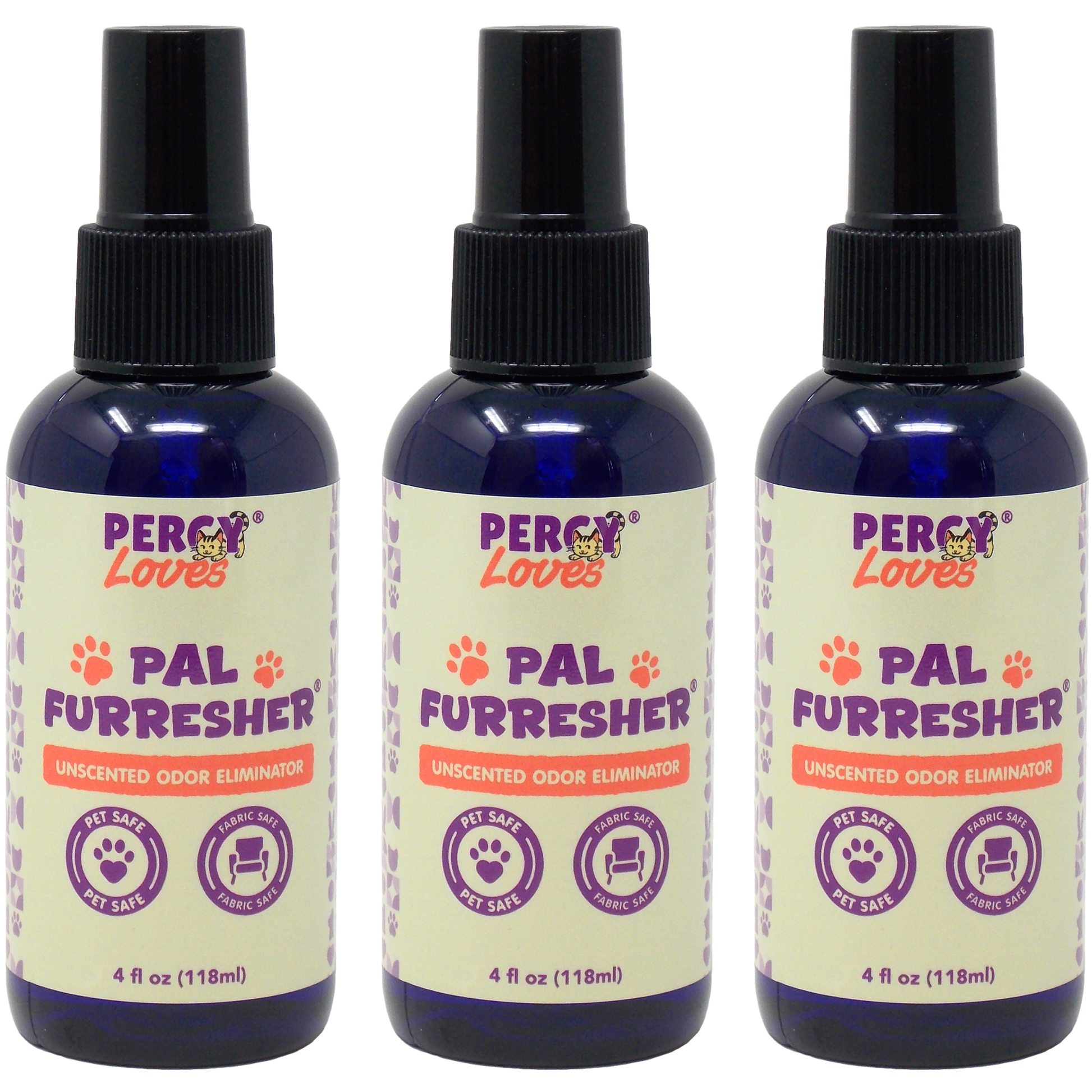 A 3 pack bundle of 4 oz Pal Furresher. Perfect for on the go odor spot treatments.